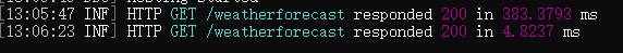 为了使日志输出更简洁,我们可以设置不输出 AspNetCore Info 日志,只需在 Serilog 配置节点中设置 AspNetCore 日志输出级别为 Warning:1