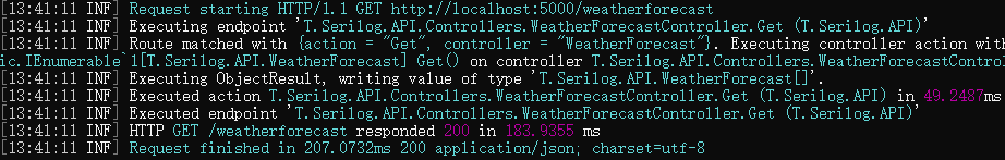 Serilog,其实Serilog输出的日志是非常简洁的,只有HTTP GET ...这一条,其他都是 AspNetCore 本身输出的。